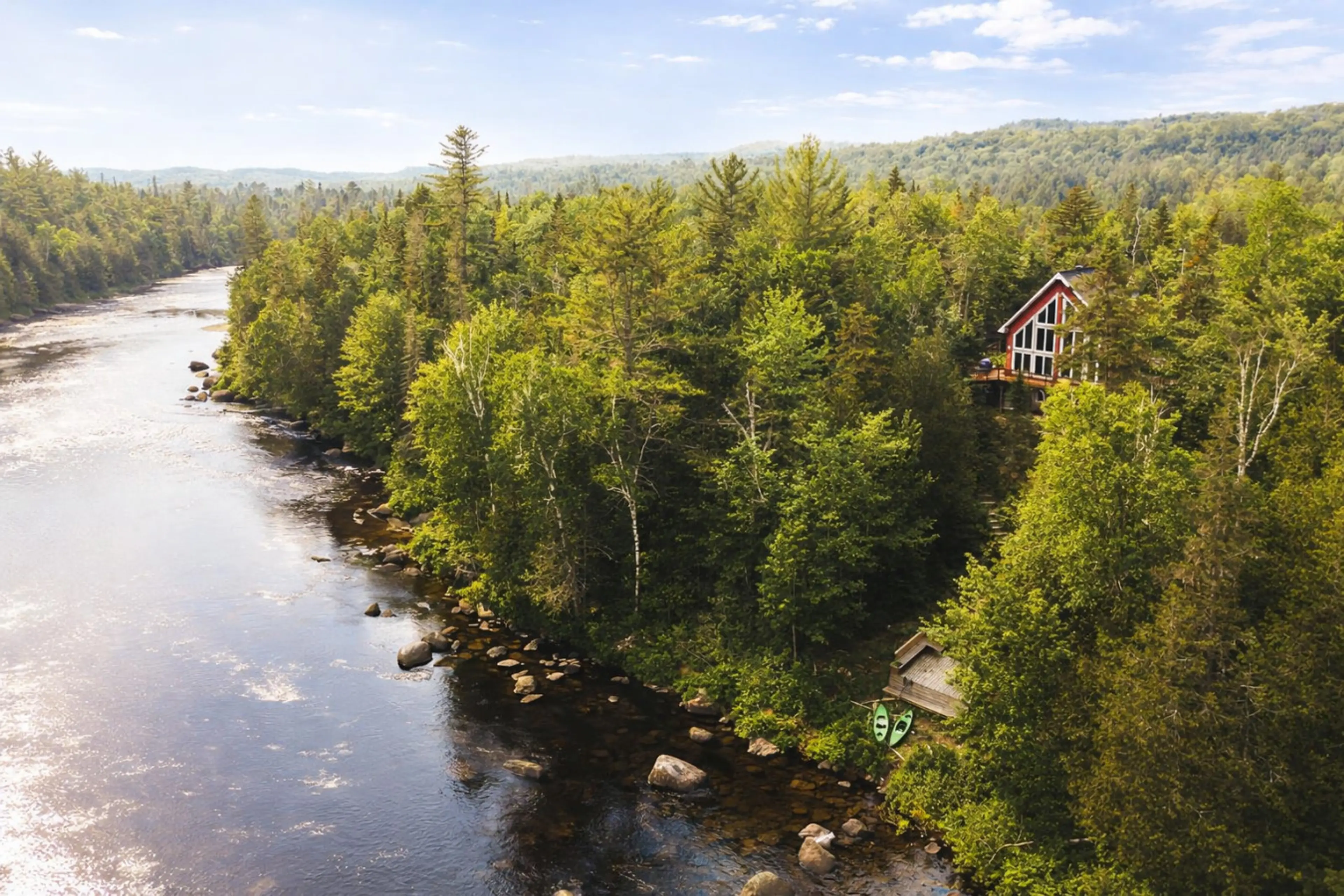 **Les fêtes bruyantes sont strictement interdites.** Laissez-vous séduire par ce chalet vaste et lumineux, niché en pleine nature au bord de la magnifique rivière Ouareau 🌿 Situé dans un environnement paisible et intime, entouré de forêt, c’est l’endroit idéal pour décrocher et se ressourcer. Pr...